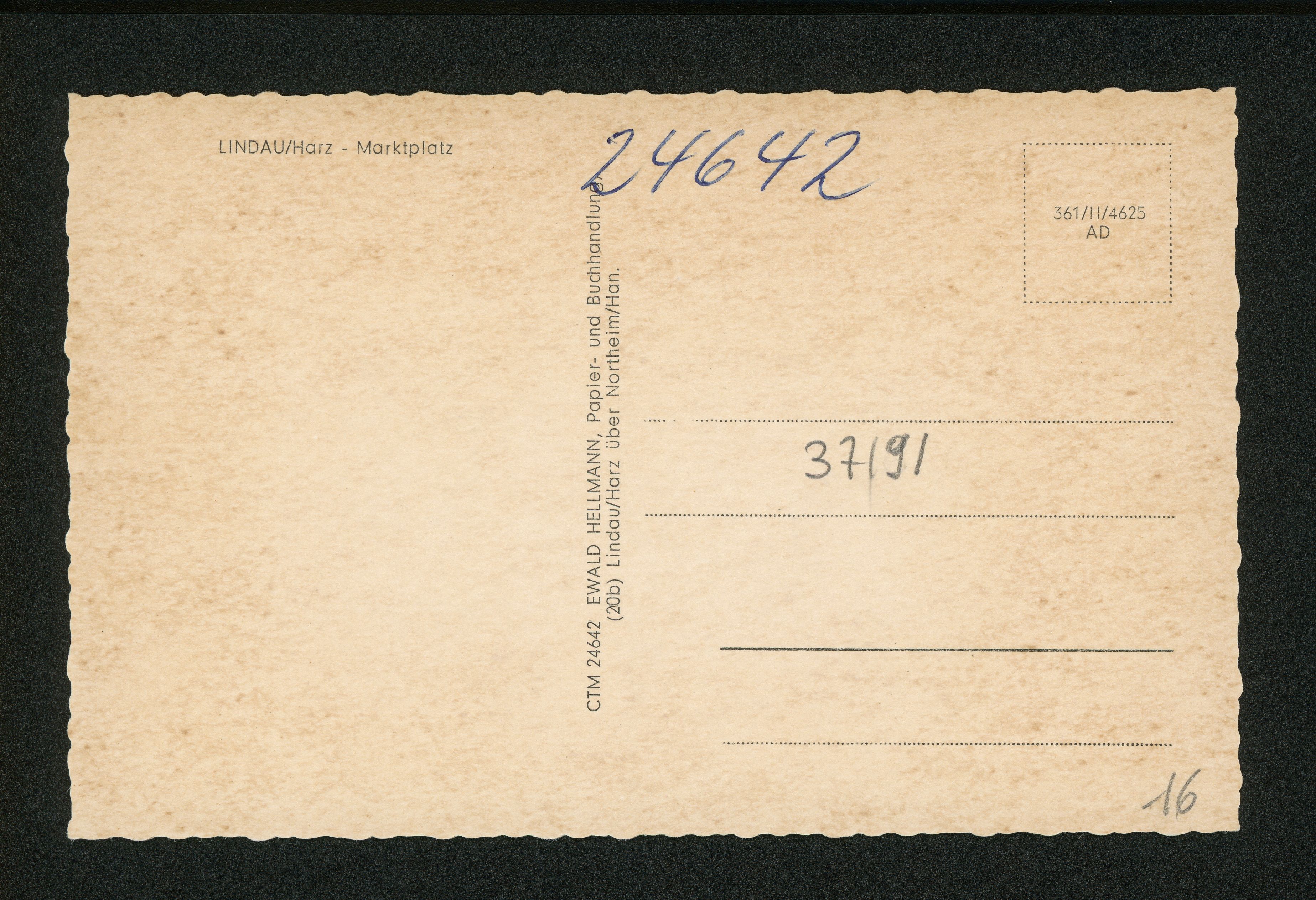 Ort Lindau Motive Marktplatz Format klein Verlag Ewald Hellmann, Lindau üb. Northeim / Hann. Bestell- oder Individualnummer CTM 24642 361/II/4625 AD Tags Schulenburg Hugo Wagener