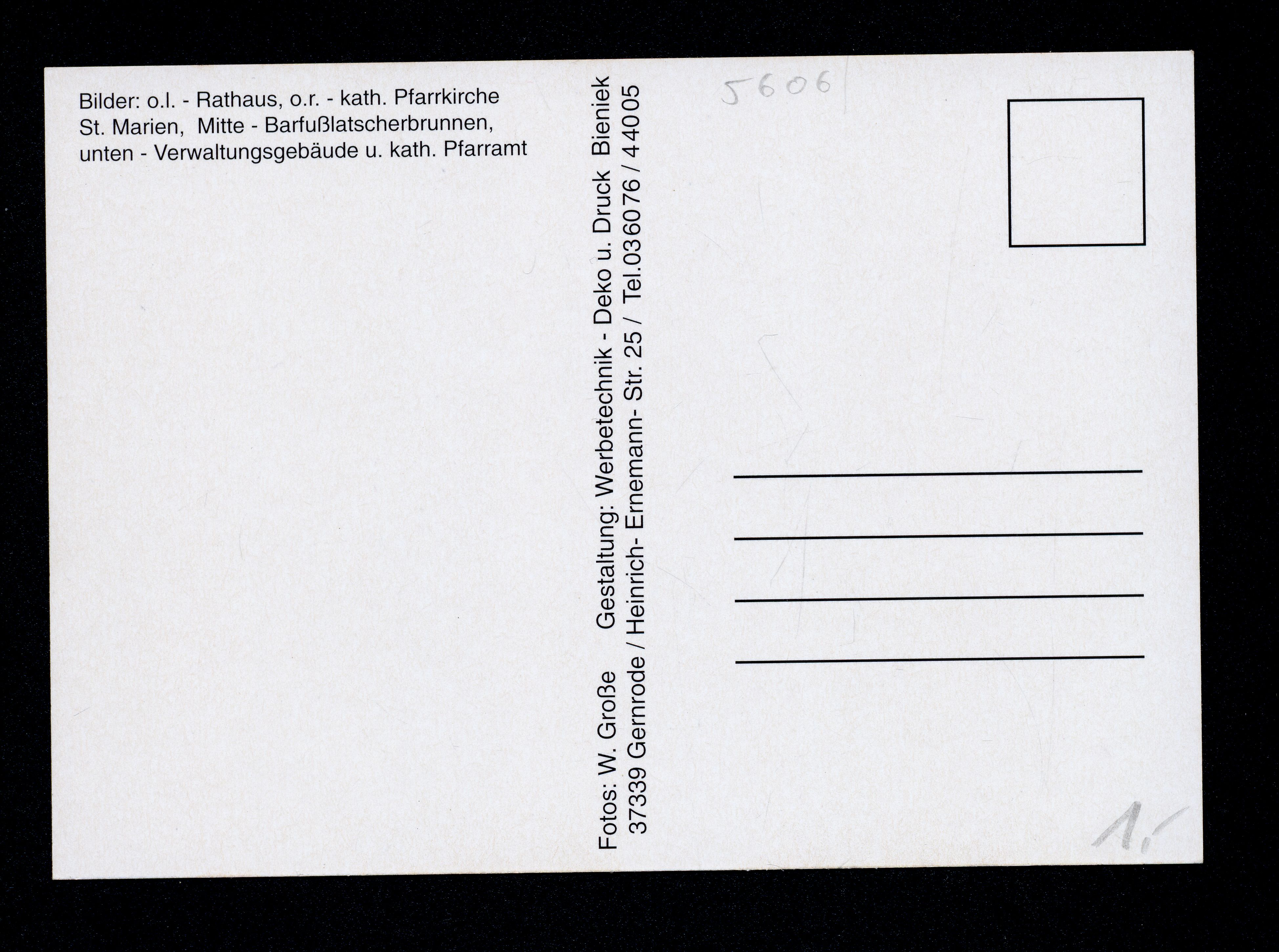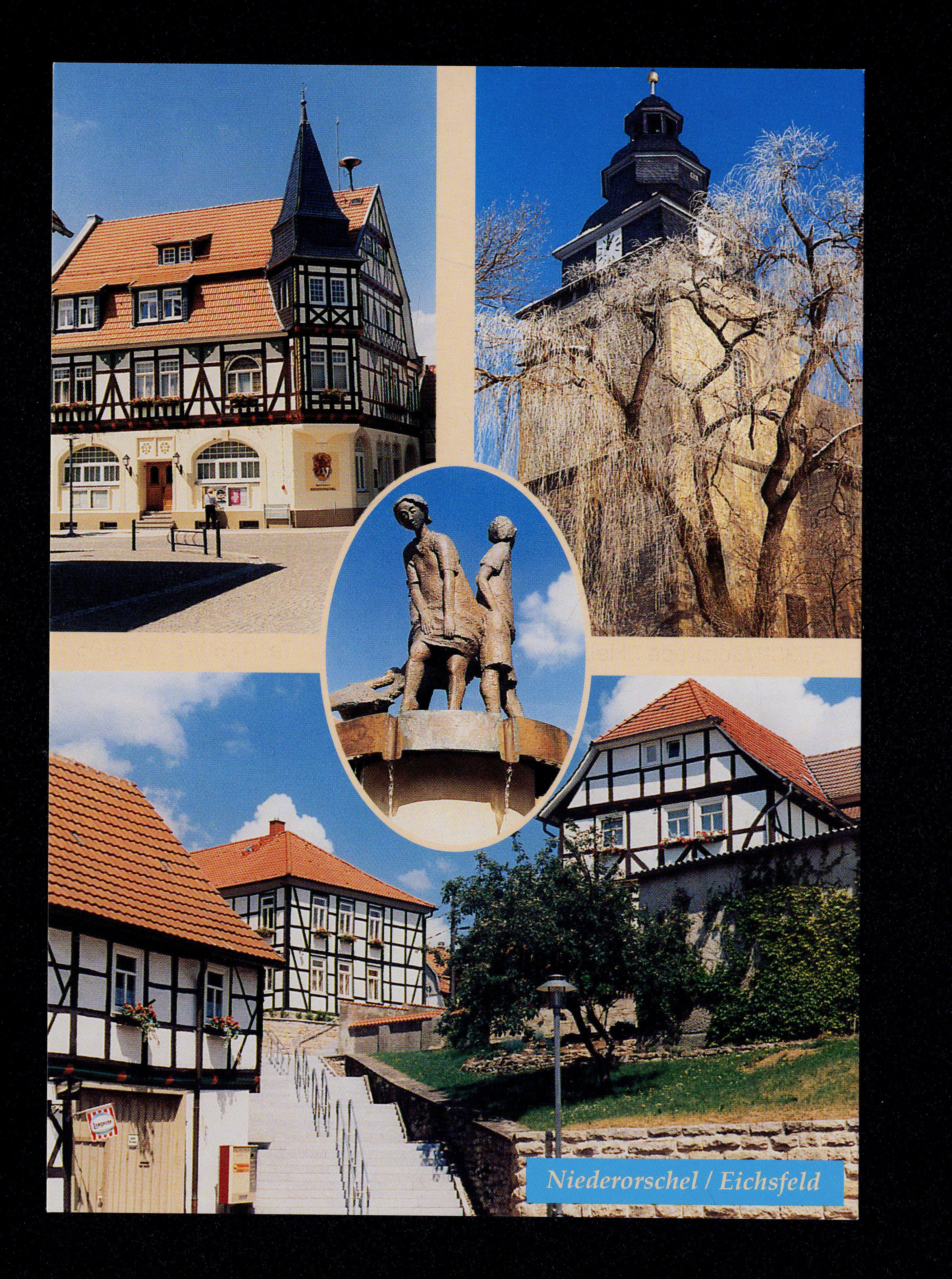 Ort Niederorschel Motive Rathaus kath. Pfarrkirche St. Marien Barfußlatscherbrunnen Verwaltungsgebäude u. kath. Pfarramt Format groß Verlag Bieniek, Gernrode Bestell- oder Individualnummer -
