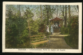 Ursulinenkloster, Partie im Garten mit Kapelle |