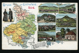 Alte Eichsfelder Tracht, Landkarte, Dingelstädt, Lengenfeld u. Stein, Kerbsche Berg, Hülfensberg, Kloster Anrode, Kloster Zella, Gleichenstein und Klüschen |