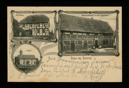 Kirche u. alte Schule, Neue Schule, Schloß, Mühle |