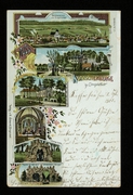 Totalansicht von Dingelstädt, Totalansicht vom Kerbschenberge, Franziskaner Kirche u. Kloster, Inneres der Klosterkirche, Oelbergs Grotte, Grotte der drei schlafenden Jünger |