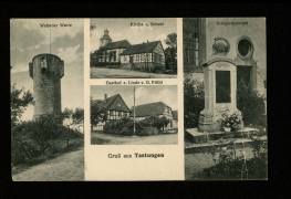 Wehnder Warte, Kirche u. Schule, Gasthof z. Linde v. G. Prühl, Kriegerdenkmal |