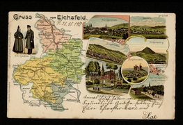 Heiligenstadt, Worbis, Dingelstädt, Hülfensberg, Kerbsche Berg, Gleichenstein u. Klüschen, Geismar, Burg Hanstein, Landkarte, Alte Eichsfelder Tracht |
