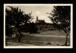 Totalansicht und Hasenburg, Pfarre, Neue Schule, Untere Dorfstraße |