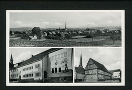 Totalansicht, Gasthof z. Post Ww. Henkel, Schule, Kirche |
