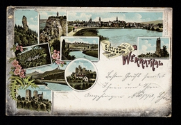 Der schönste Blick in das herrliche Werrathal ''v.d. Teufelskanzel gesehen'', Teufelskanzel, Allendorf, Ellershausen, Sooden, Ahrenberg, Orpherode, Meissner, Kammerbach, Frankenhain, Lindewerra, Bahnhof Oberrieden, Oberrieden, Grossalmerode, Bilstein, Ludwigst u Wendershausen |