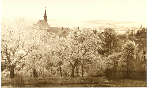 Panorama, Gastwirtschaft Joh. Köhler, Alte Linde (Umfang 13m), Bahnhof |