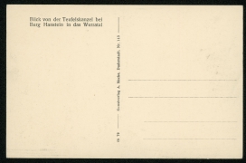 Teufelskanzel beim Hanstein im Werratal, Teufelskanzel-Sage nach Iseke, Blick von der Teufelskanzel, Berghütte und Wirtshaus Teufelskanzel |