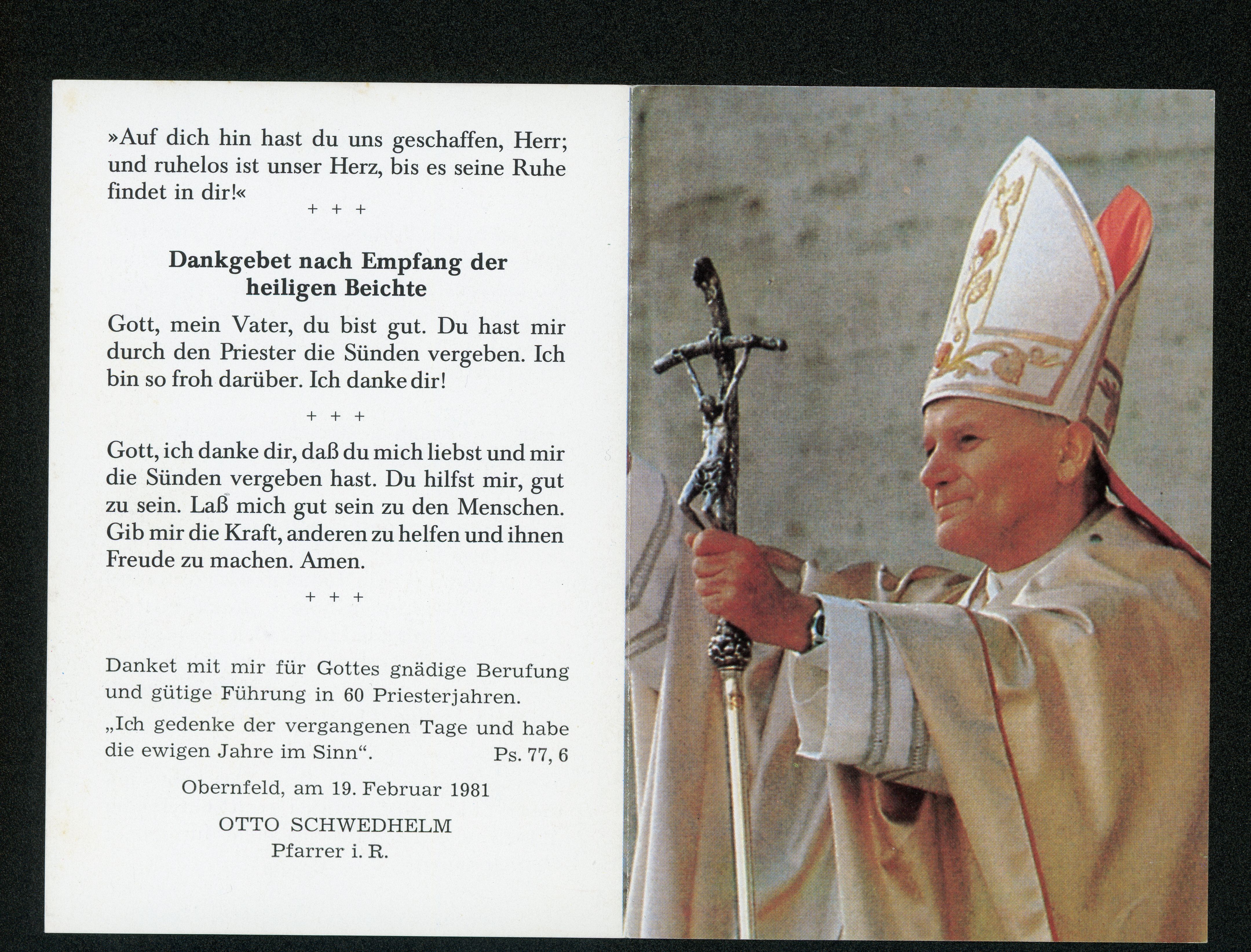 Ort Obernfeld - Belege Motive Priesterjubiläum, Otto Schwedhelm, Pfarrer i.R. Format Sonderformat Jahr 1981 Verlag Josef Kral, Abensberg Bestell- oder Individualnummer -