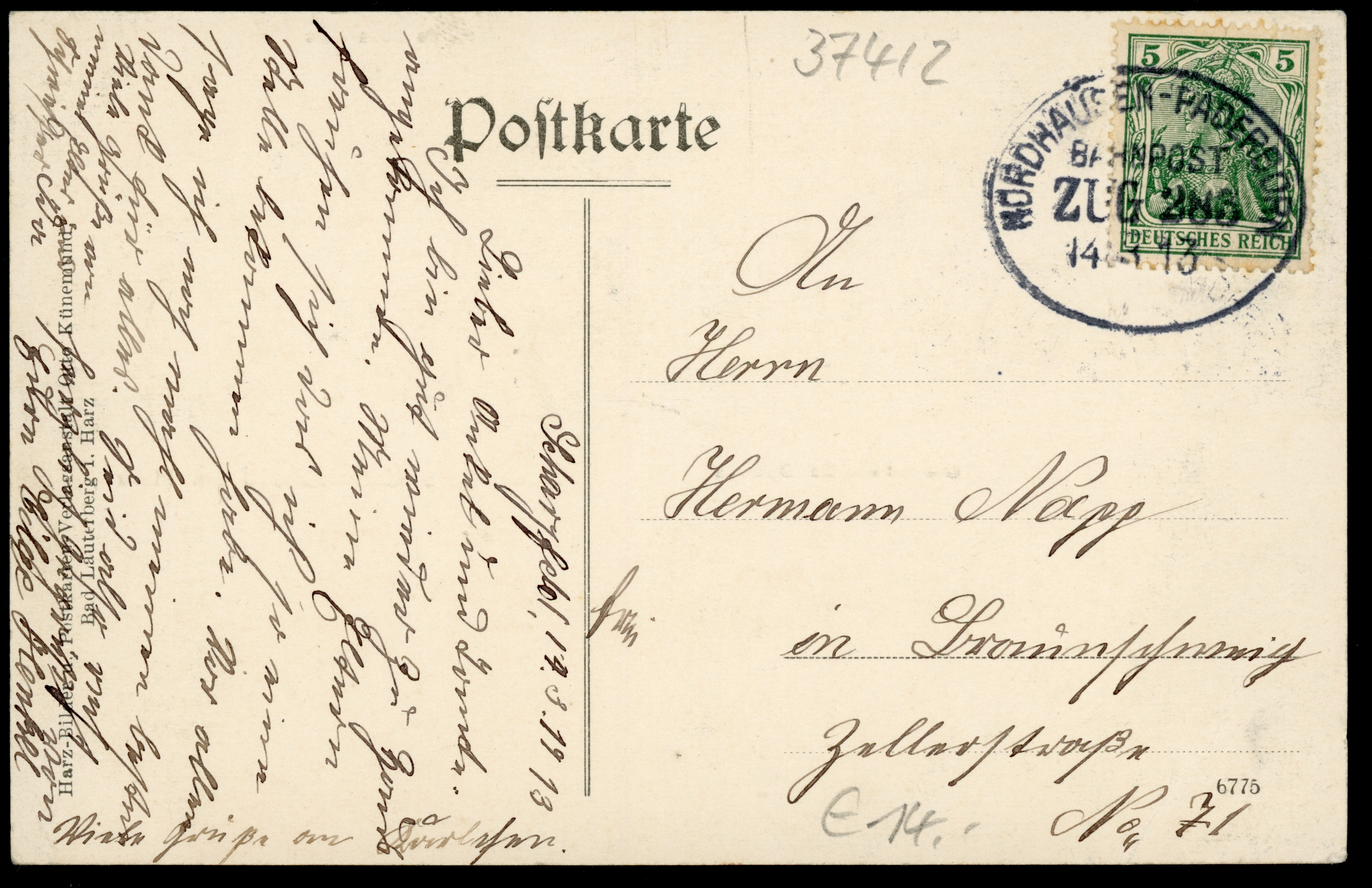 Ort Scharzfeld Motive Steinkirche Ruine Scharzfels Gasthof von Ed. Dohmes Format klein Jahr 1913 Verlag Otto Künemund, Lauterberg a/Harz Bestell- oder Individualnummer - Tags Gasthaus Burg Scharzfels