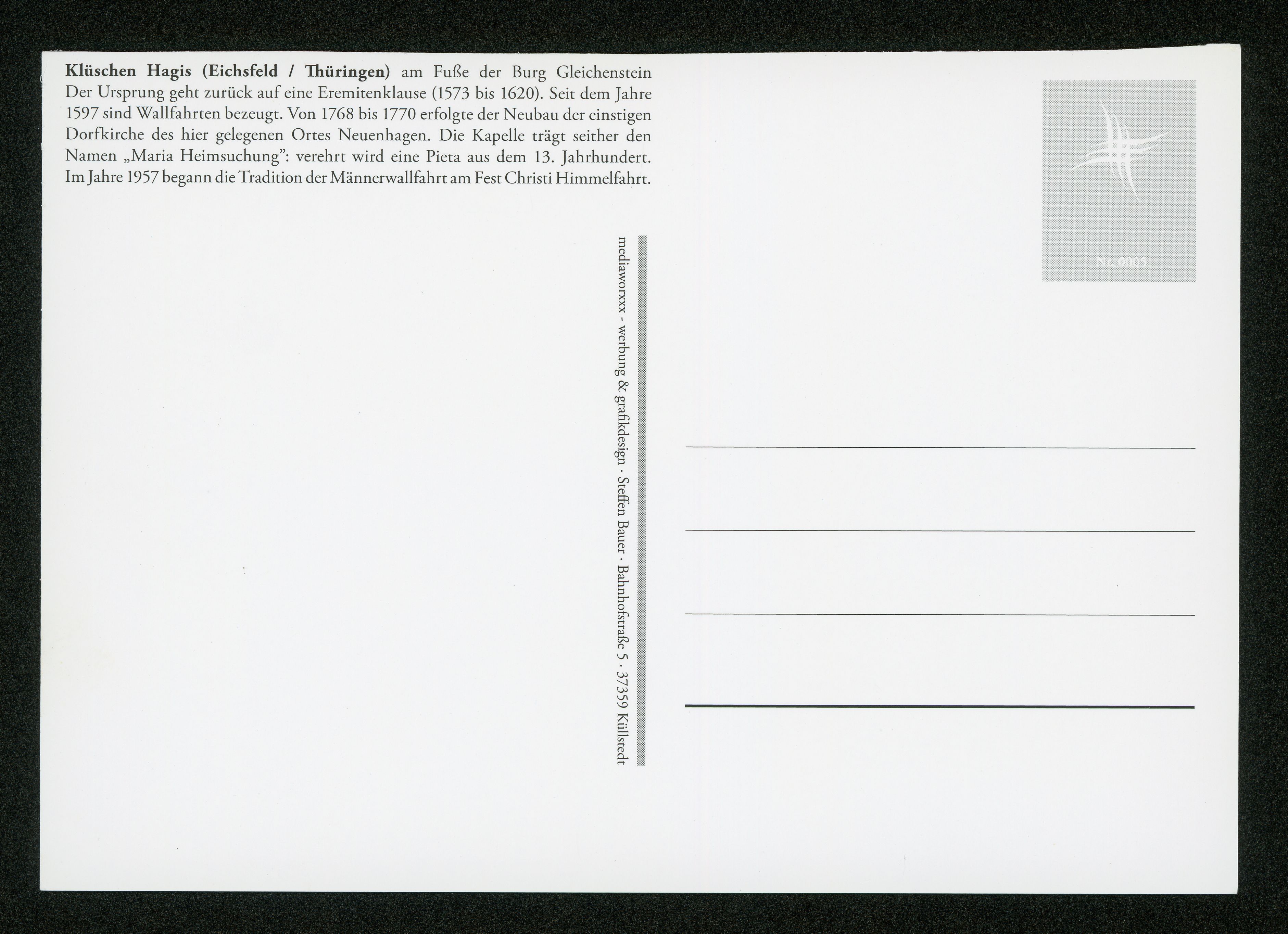 Ort Wachstedt Motive Wallfahrtskapelle Klüschen Hagis Format groß Verlag Steffen Bauer, Küllstedt Bestell- oder Individualnummer Nr. 0005 Tags Altar Kirche