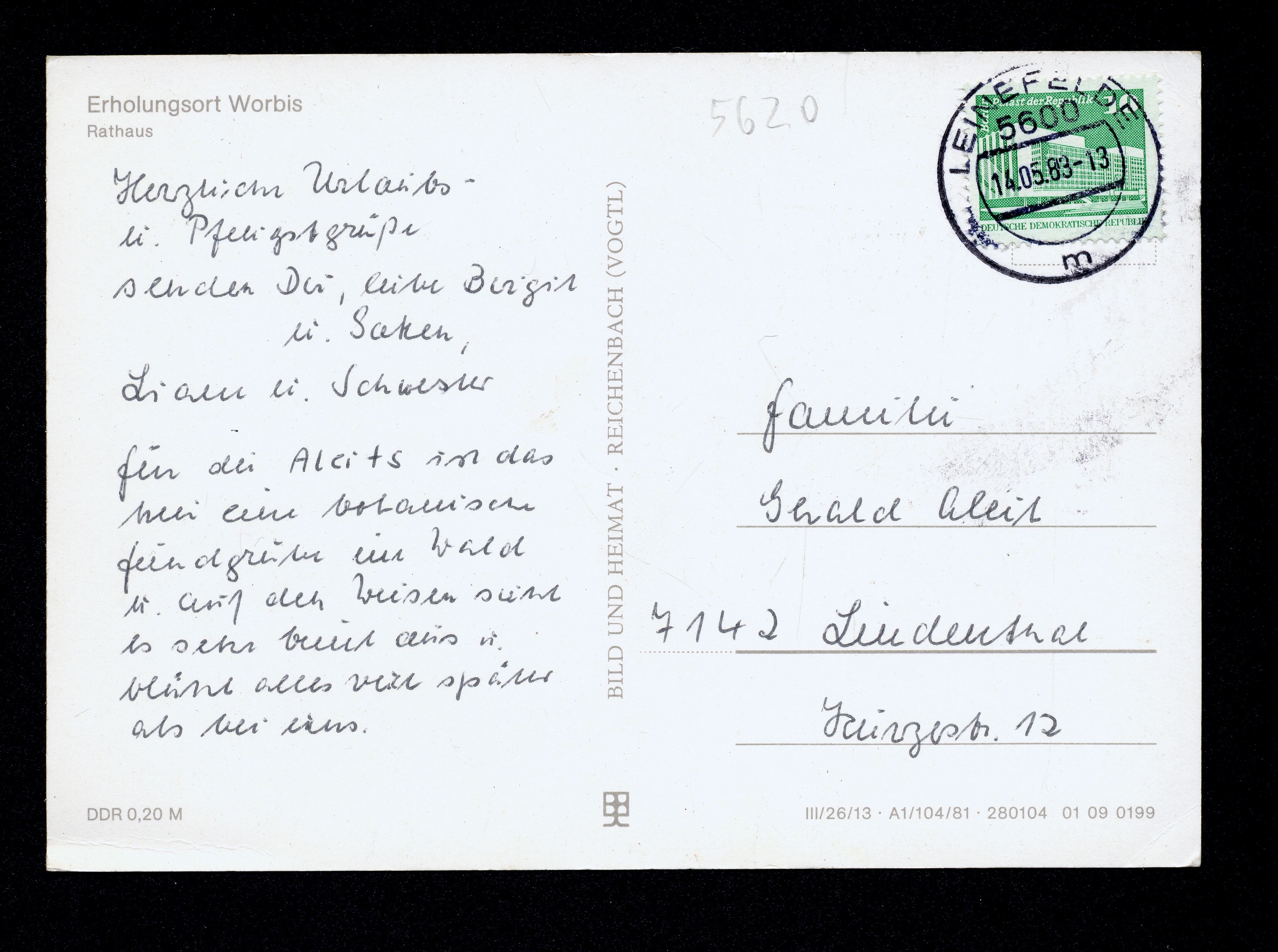 Ort Worbis Motive Rathaus Format groß Jahr 1981 Verlag Bild und Heimat, Reichenbach i. V. (VEB Bild und Heimat) Bestell- oder Individualnummer III/26/13 A1/104/81 280104 01 09 0199 Versanddatum 14.05.1983