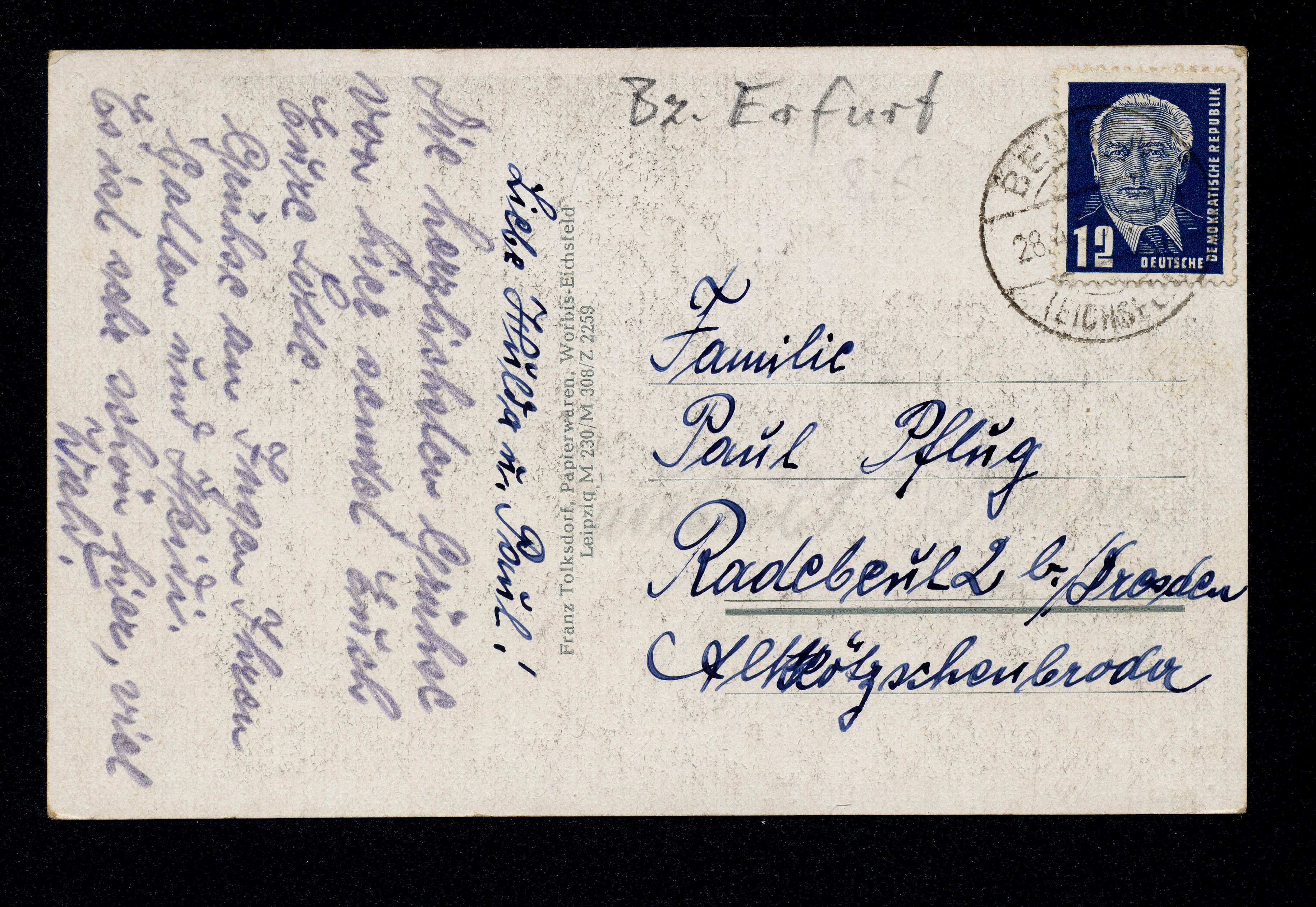 Ort Worbis Motive Rentamt Format klein Jahr 1959 Verlag Franz Tolksdorf, Worbis-Eichsfeld Bestell- oder Individualnummer M 230/M 308/Z 2259 Versanddatum 28.04.1959