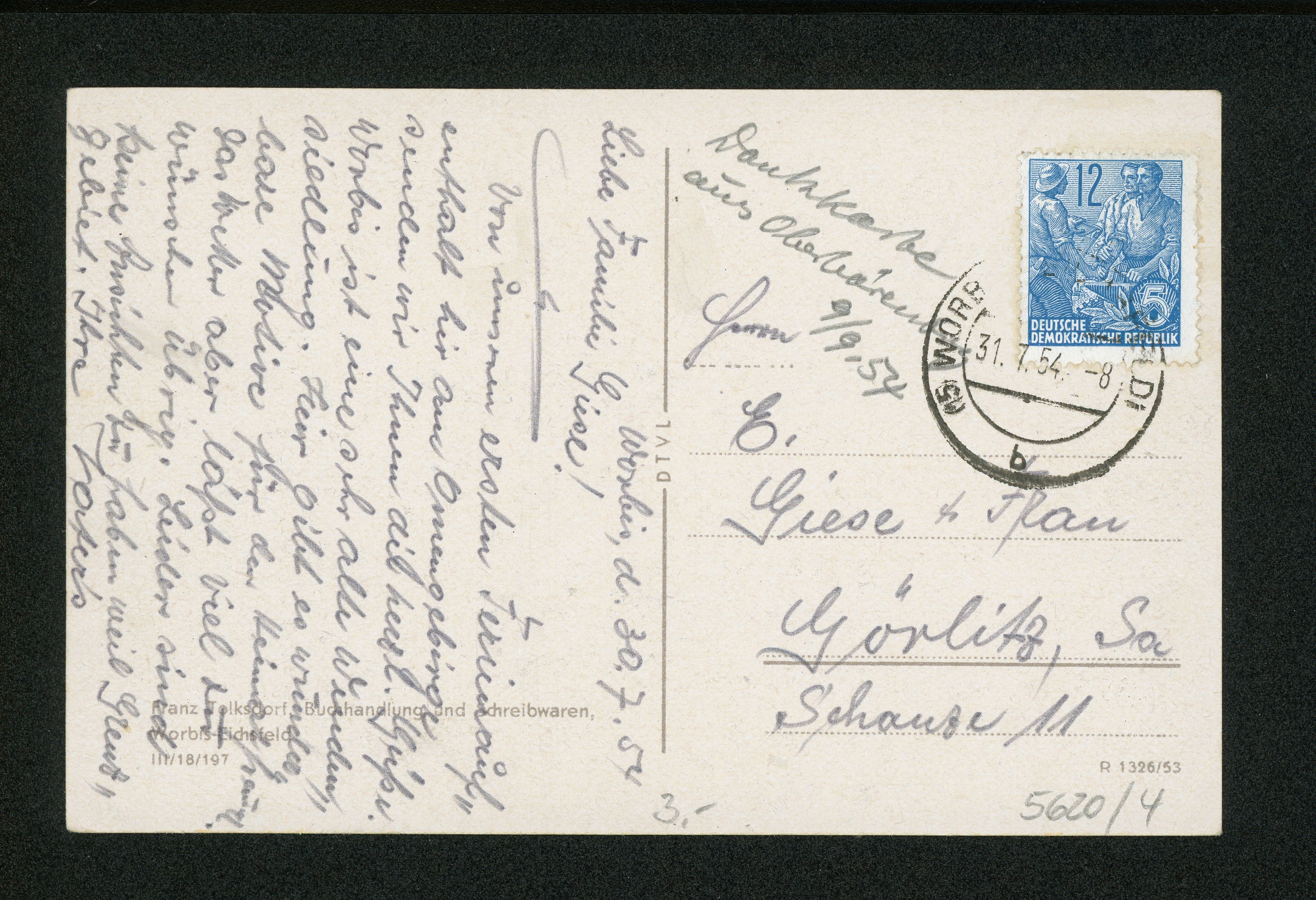 Ort Worbis Motive Rentamt Format klein Jahr 1953 Verlag Franz Tolksdorf, Worbis-Eichsfeld Bestell- oder Individualnummer III/18/197 R 1326/53 Versanddatum 31.07.1954